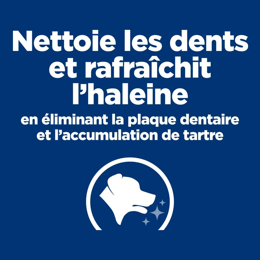 En effet, les croquettes HILL’S T/D Mini possèdent une organisation particulière des fibres sous forme de matrice résistante ce qui permet une pénétration profonde de la dent dans la croquette sans qu’elle ne s’émiette. La croquette enveloppe la dent avant de se briser et les fibres qu’elle renferme exercent un effet nettoyant à la surface de la dent, contribuant ainsi à réduire la formation de tartre, de plaque dentaire et de taches.