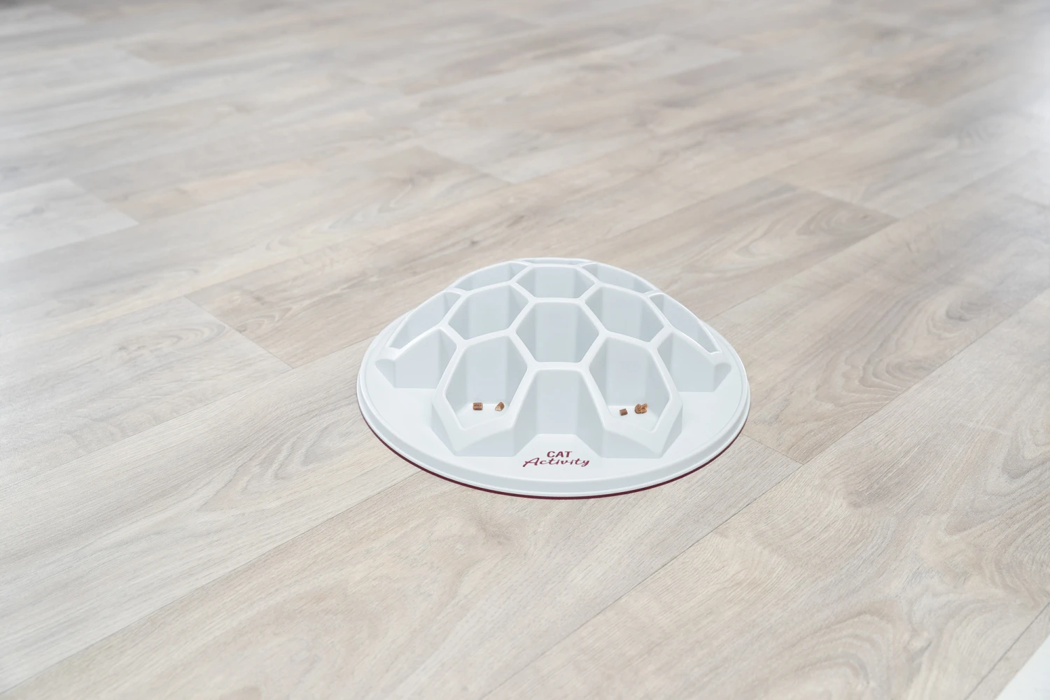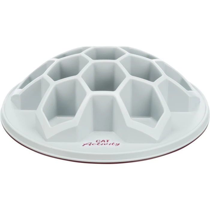 Le Trixie Cat Activity Snack Hive XXL Light Grey 35 x 35 cm est un jeu stimulant pour les chats, particulièrement adapté aux gros chats, où ils peuvent pêcher leur récompense avec dextérité. Cette amusante ruche à friandises est faite de plastique robuste et comporte des trous en forme de nid d’abeille. Les trous contiennent la récompense de votre chat ou sa nourriture habituelle, il doit ensuite utiliser sa dextérité pour les attraper. Cela réduit l’ennui et procure une stimulation mentale, et convient particulièrement aux chats qui ont tendance à trop manger : vous pouvez également utiliser la Ruche pour la nourriture sèche quotidienne ! La ruche est fabriquée en plastique et est facile à nettoyer. Elle est équipé en dessous d’un anneau en caoutchouc, qui l’empêche de glisser pendant les jeux et les repas.