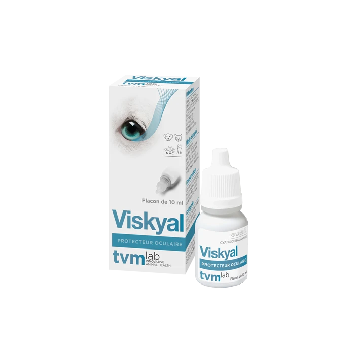 VISKYAL :L’acide hyaluronique est un constituant naturel de l’oeil qui participe à la composition du film lacrymal. Il possède également des propriétés viscoélastiques et hydratantes grâce à sa capacité à se lier à un très grand nombre de molécules d’eau .